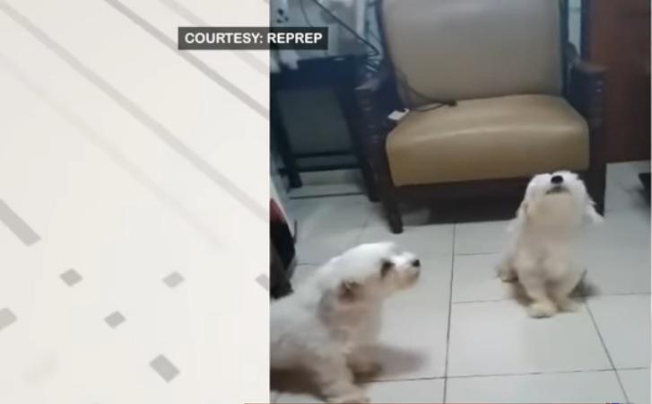 Nag-duet naman ang mga alagang aso na sina Rainbow at Twinkle sa pagkikipagkantahan sa kanilang fur dad. Minsan naman, sila na ang tumatapos ng kanta.